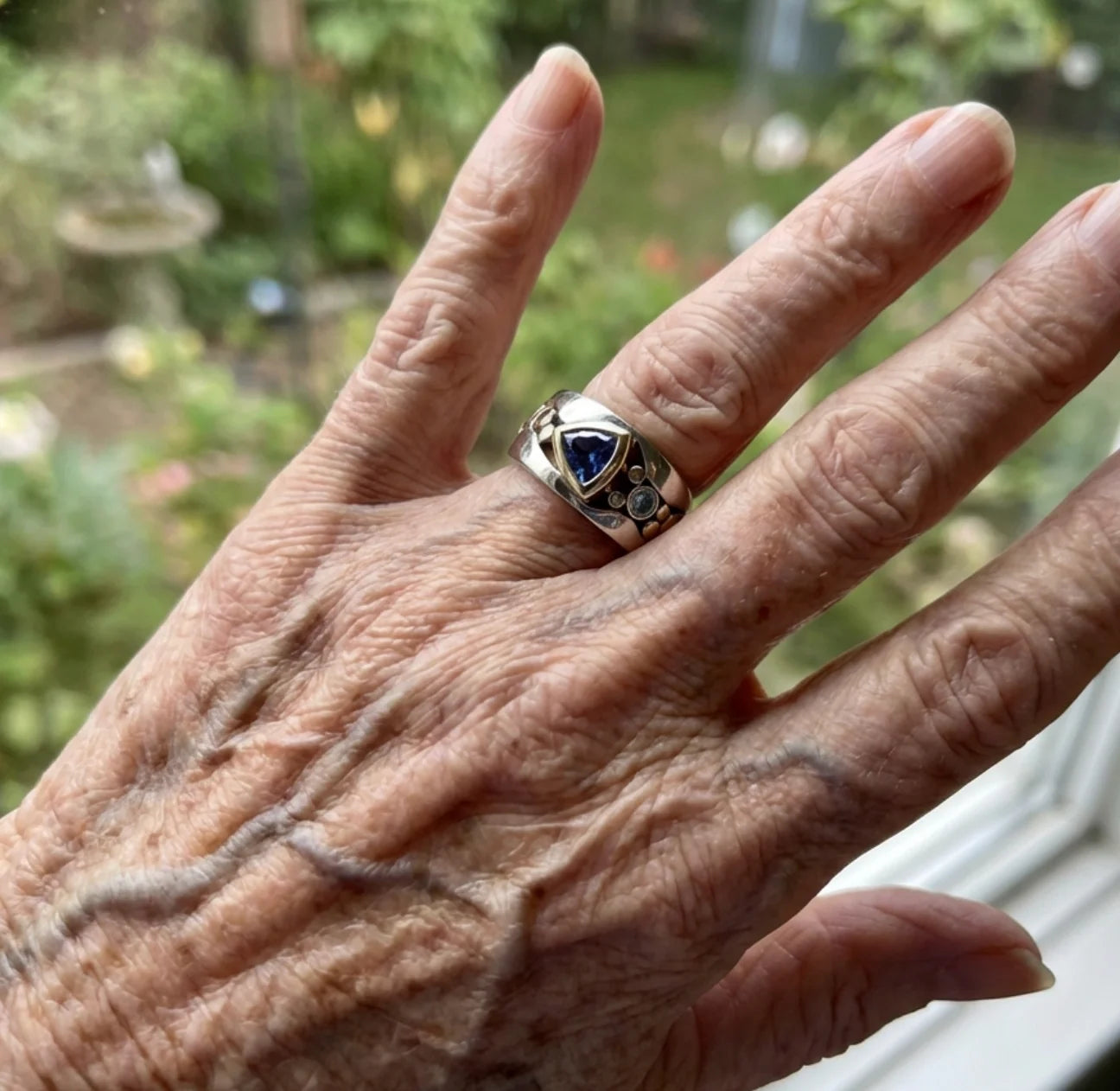 "Je sertis des pierres depuis 23 ans et chaque pièce me passionne toujours autant. La façon dont ces gemmes colorées captent la lumière différemment au fil de la journée est toujours aussi fascinante. Je veille à ce que chaque pierre soit parfaitement fixée et positionnée avant de quitter mon établi."